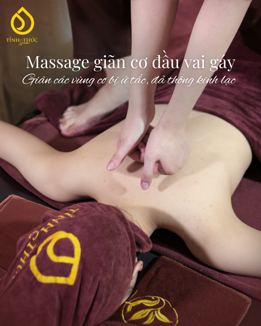 💆 Massage giãn cơ đầu - vai - gáy: là phương pháp massage trị liệu với động tác bẻ cơ, bấm huyệt,... giúp giải phóng các nhóm cơ bị ứ tắc, đả thông kinh lạc.